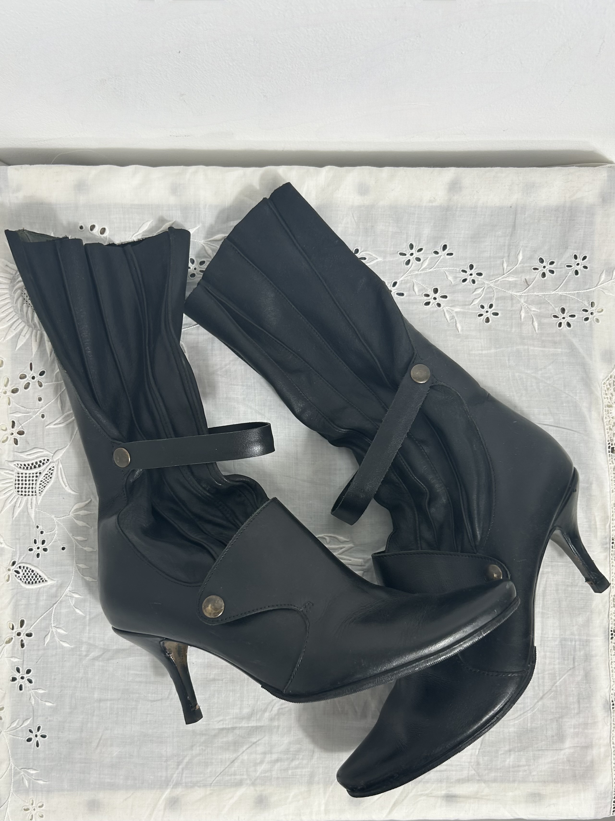 Black leather utility heeled boots with buckles, uk 5